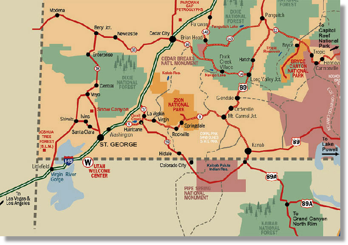 to Zion 20 miles SW, overlooking the North Fork Virgin River Valley.